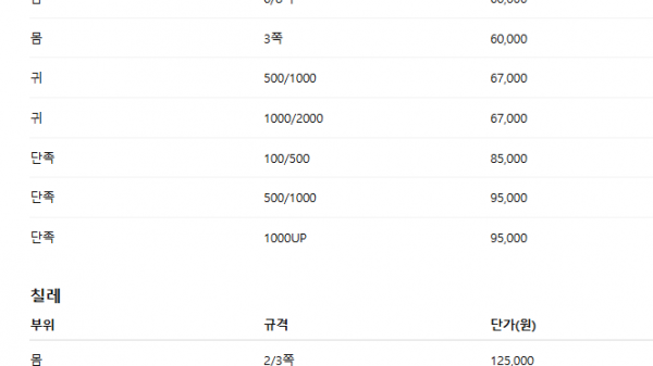 Korean Livestock > Price Table
