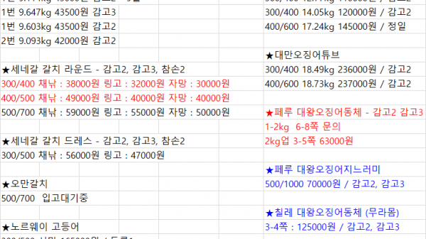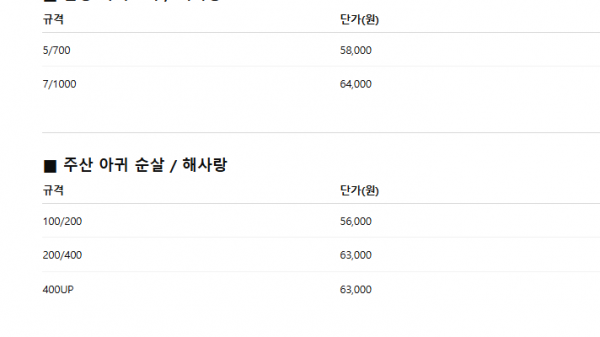 Korean Seafood > Price Table